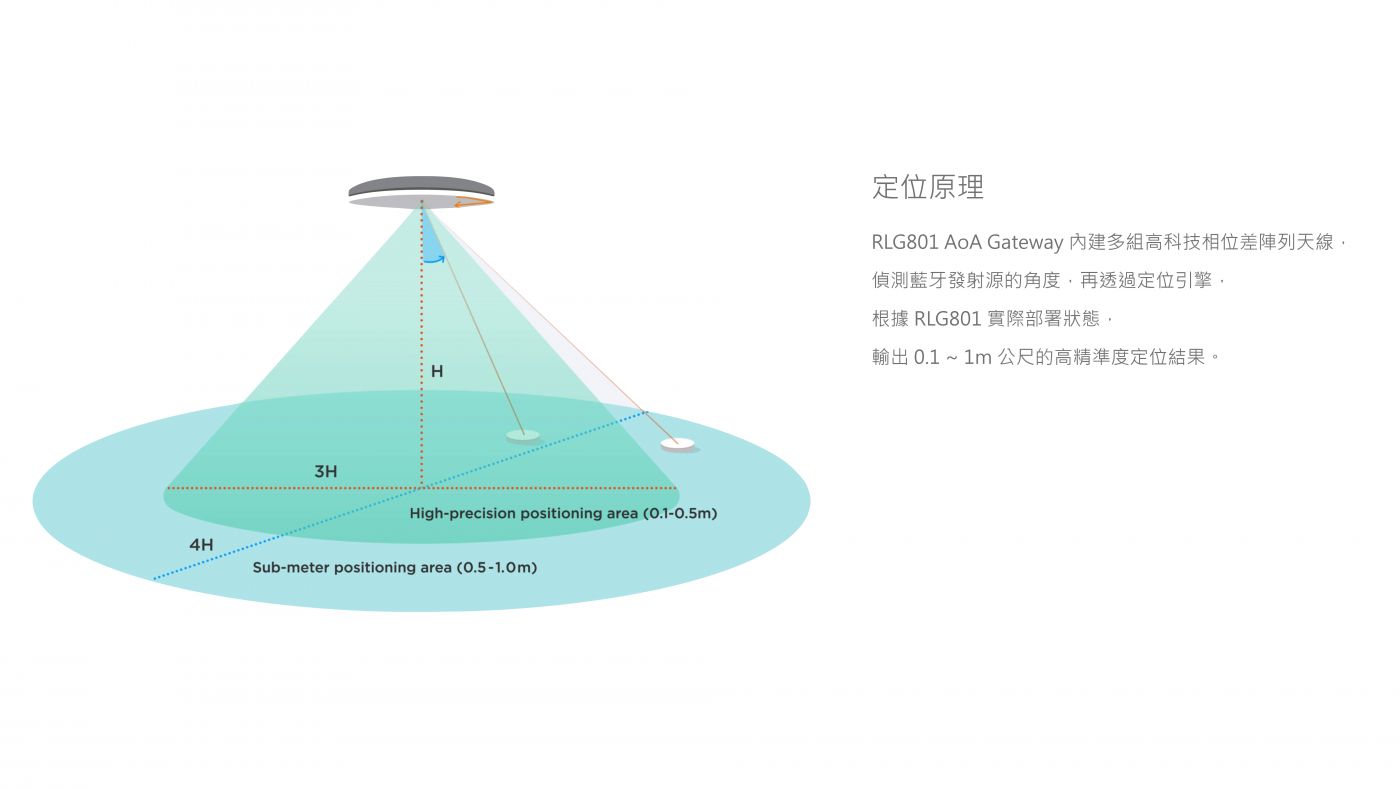 ◆RLG801 AoA Locator/Gateway 使用藍牙AoA技術,是成熟的高精準度室內定位產品,擁有配套完善的周邊軟體與設備。